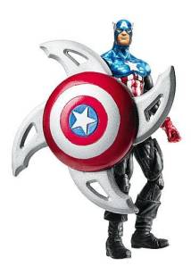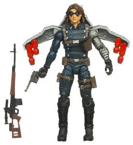 So far I have picked up the Winter Soldier and Battlefield Captain America figures, and am very please with both. The Winter Soldier comes with three guns, and has holsters for both of his hand guns. He also comes with a winged rocket pack, adding a cool play option for kids. Battlefield Captain America comes with two guns, his old-style triangular shield, and a removable helmet. The shield can easily fit on his arm, or on his back for carrying. Both are lovely figures, with very nice sculpting and detail, making them very true to their comic book likenesses. Some of the other figures have gimmicky shields, which collectors and purists won’t be happy with, but add a playability factor for kids.