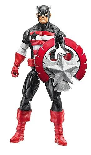 The Captain America toy line from Hasbro follows the model Hasbro set up when they made Iron Man 2 toys last year, two separate lines of 3-3/4” action figures, one based on the movie, and one based on the comic book version of Cap. The movie line has yet to hit stores, but last week the comic series started popping up on shelves at retailers everywhere. So far only the first four basic and three deluxe figures are out, along with a few vehicles and role play items.